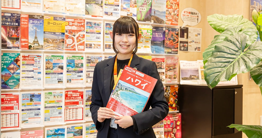 旅行会社のカウンターで、お客様の旅行プランを組み立て、予約業務を行います。さまざま旅行の知識や提案力、プランニングする力が求められる仕事です。