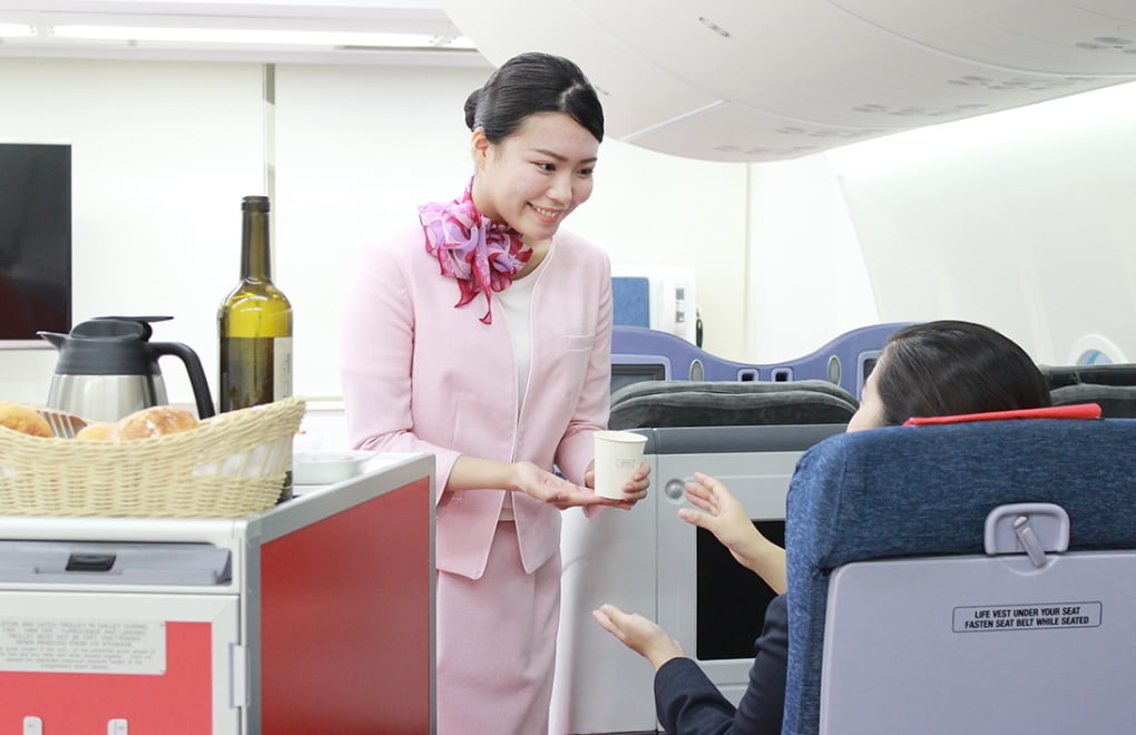 機内での接客サービスを身につけます。